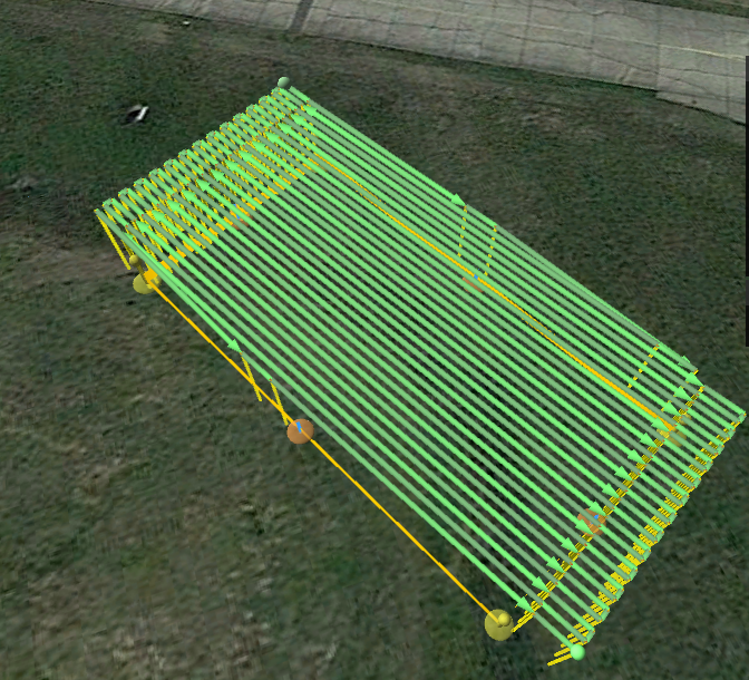 Je nachdem welches Erkundungsziel mit der Befliegung verfolgt wird und in Abhängigkeit der Umgebungsbedingungen des zu befliegenden Areals sind im Gelände vorbereitende Vermessungs- und Markierungsarbeiten durchzuführen. Beispielsweise kann es erforderlich sein sog. Passpunkte im Gelände auszubringen, um eine nachgelagerte Detailverortung der Befliegung zu ermöglichen.