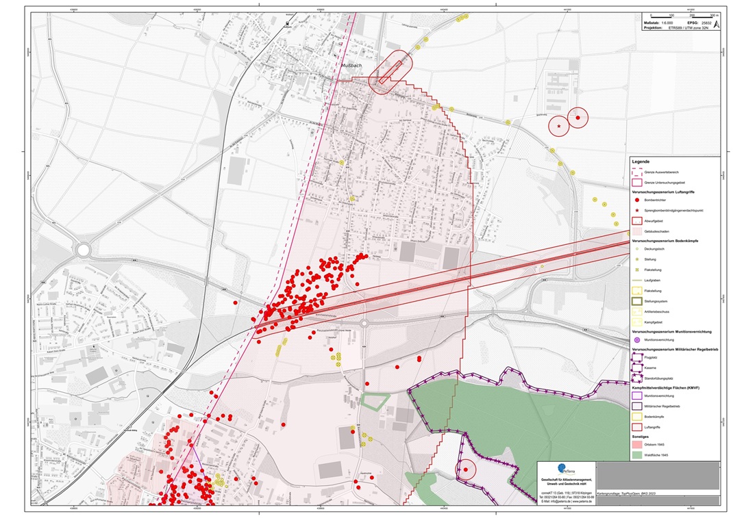 Zu Beginn einer Planung muss zunächst der Überblick über die Anforderungen und die Gegebenheiten vor Ort gewonnen werden. Um eine Bewertung der Kampfmittelgefährdung des Baufeldes vorzunehmen, erfolgt eine multitemporale[DK2] Luftbildauswertung und historische Recherche in einschlägigen Archiven und Fachliteratur. Am Ende dieser Historisch-genetischen Rekonstruktion steht eine Bewertung der Verdachtsmomente und eine räumliche Begrenzung des Kampfmittelverdachts.